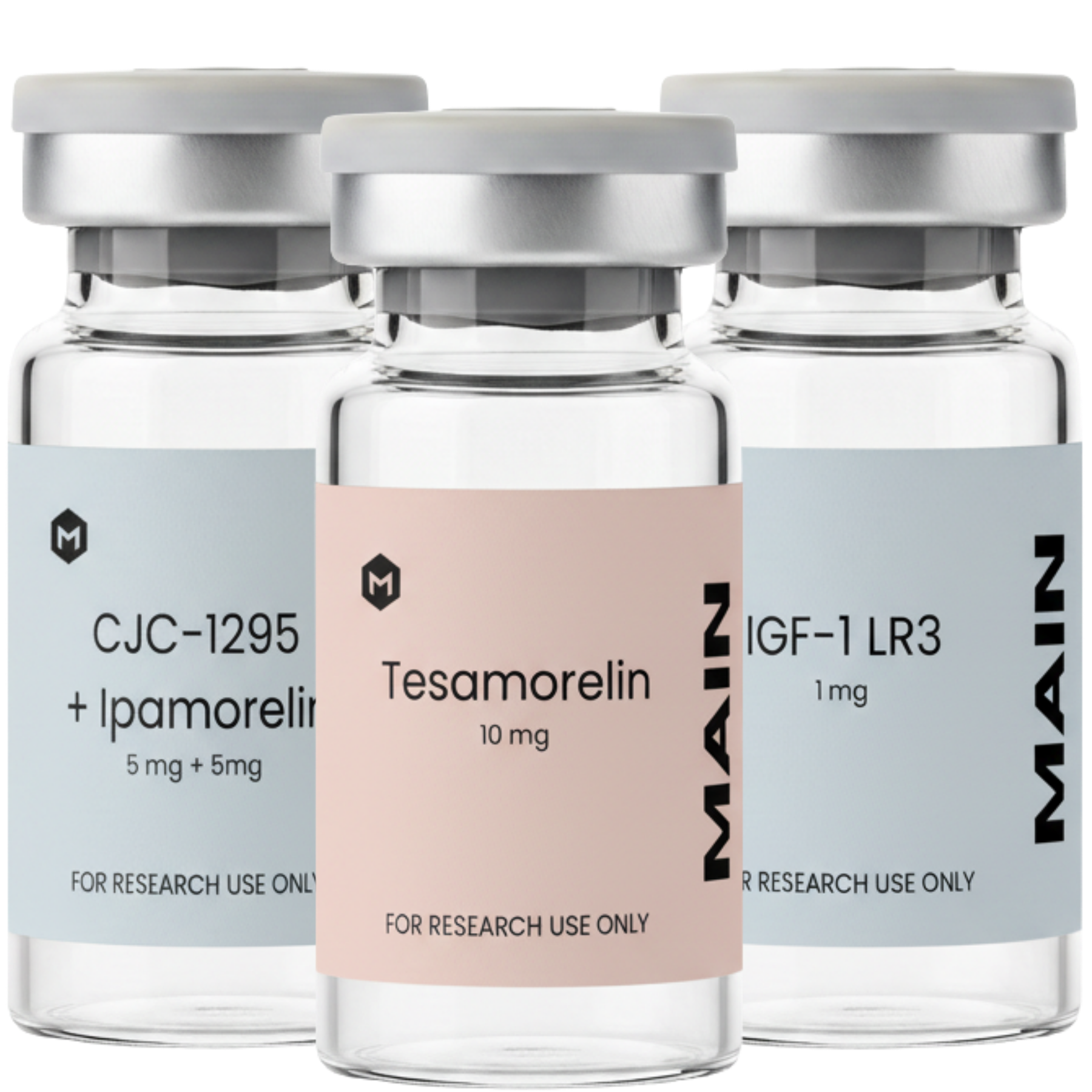 A curated research bundle featuring three compounds commonly studied for their roles in growth hormone and cellular growth pathways.