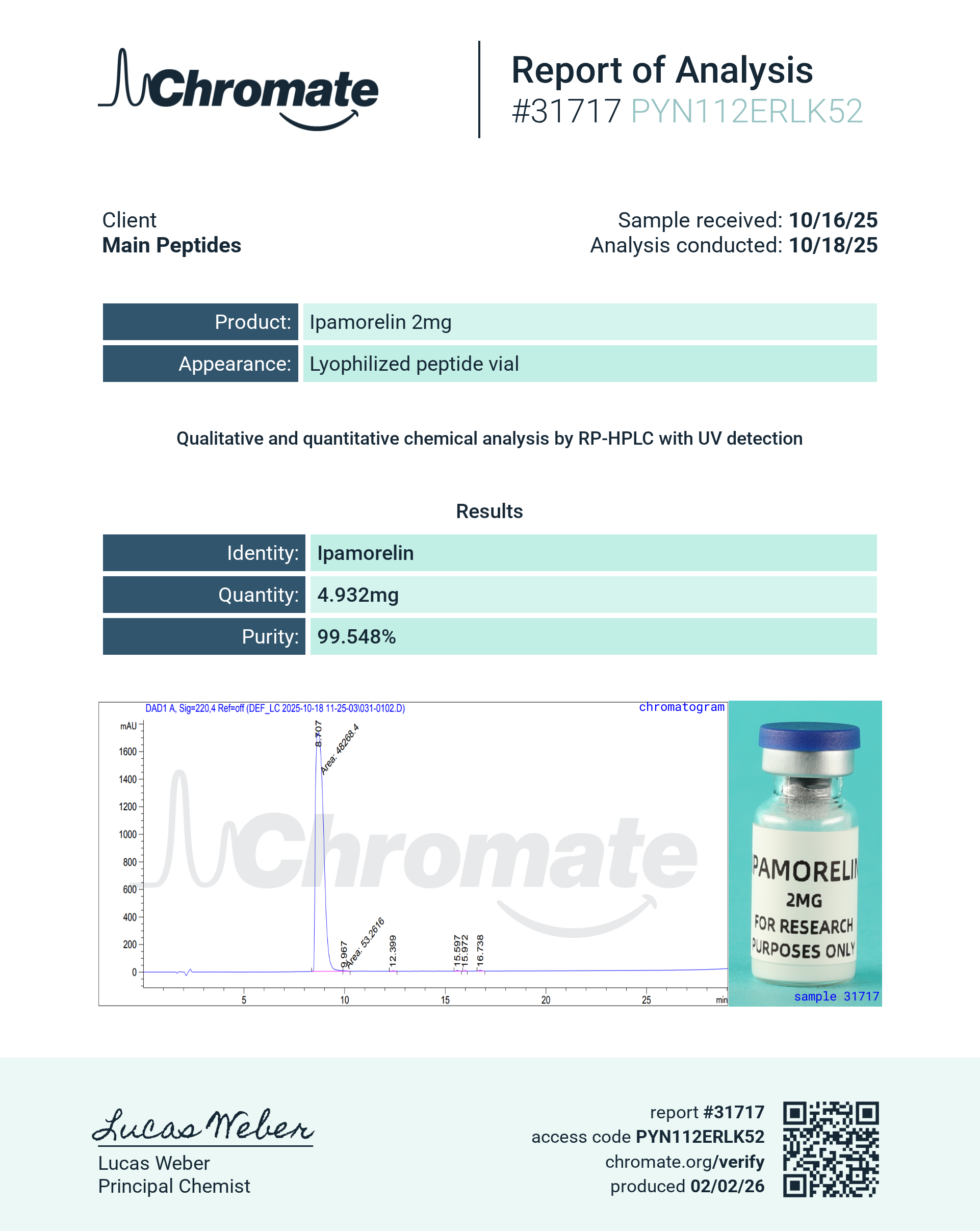 Ipamorelin is a selective ghrelin receptor agonist and growth hormone secretagogue used in research to stimulate GH release without significantly affecting cortisol or prolactin levels. It is frequently studied in endocrine models to explore pituitary signaling, receptor specificity, and metabolic feedback mechanisms.